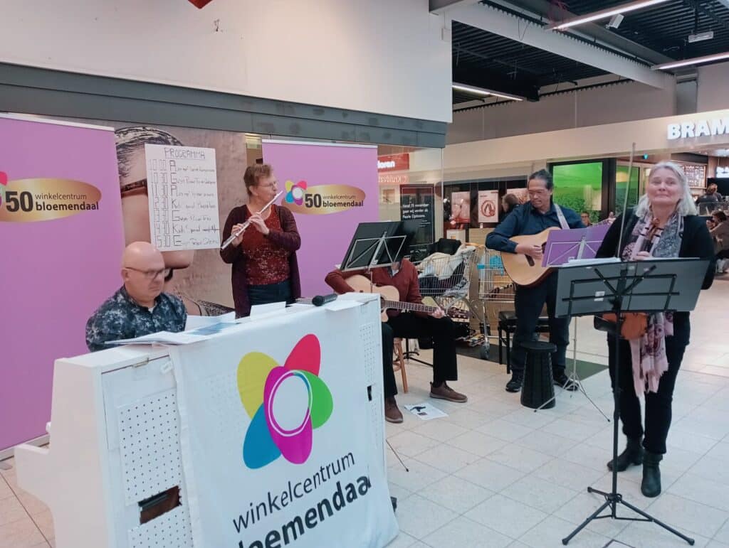 Het was een groot succes in winkelcentrum Bloemendaal. Op 10 februari en 16 november 2024 met het Gwynpassie Collectief van Goudraad Muziek workshop Folk bij elkaar. Wij speelden een gipsy nummer Joseph Joseph samen met de pianist. We kwamen uit alle hoeken te voorschijn. Het is ook gefilmd door Raymond en op facebook rond gegaan.