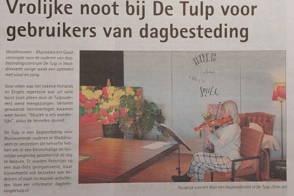Twee maal is Gouraad Muziek in de krant gestaan met een foto van Gwyn in dagbestedingshuis de Tulp in de plaatselijke krant en met het Gwynpassie Collectief bij de opening van winkelcentrum in de Goudse Post.